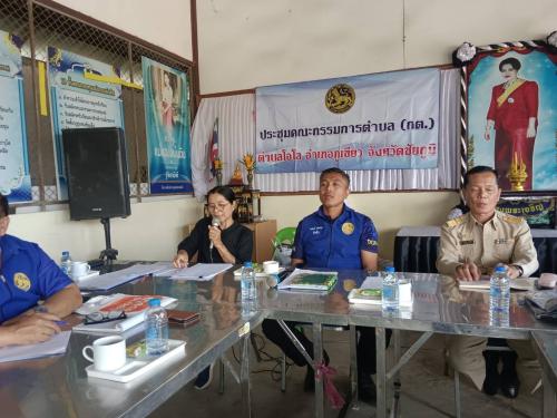 นางมะลิ พิชญานุพงศ์ พัฒนาการอำเภอภูเขียว มอบหมายนางแก้วมณี สิงห์จานุสงค์ พัฒนากรอำเภอภูเขียวประจำตำบลโอโลร่วมประชุมกำนันผู้ใหญ่บ้านสัญจร ประจำเดือนธันวาคม